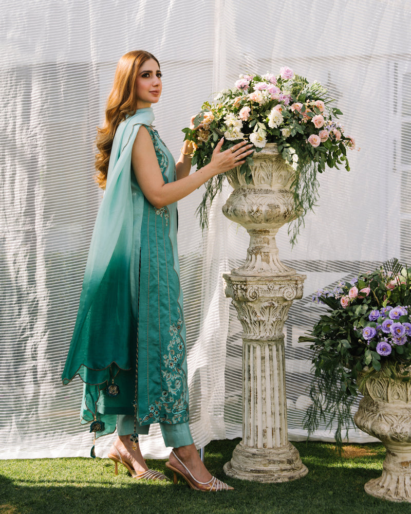 Dry clean recommended. Iron clothes at moderate temperature. Store outfit in the garment bag provided.